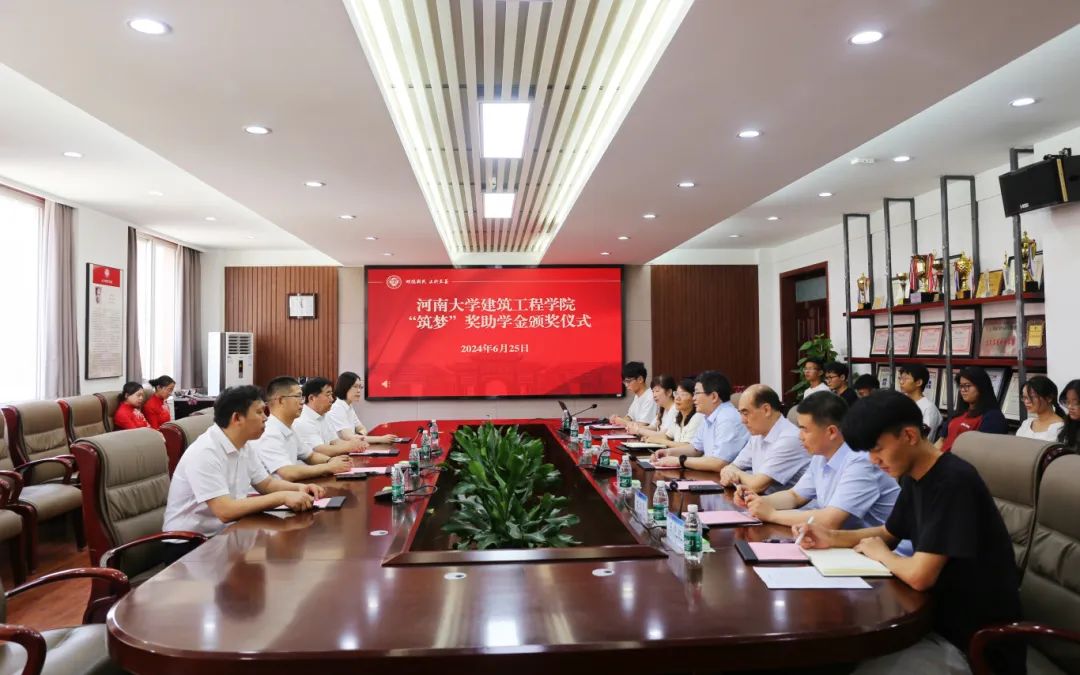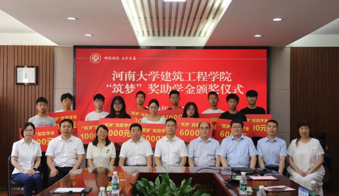 近日,河南大学建筑工程学院“筑梦”奖助学金颁奖仪式在建筑工程学院204会议室举行。“筑梦”奖助学金捐赠人、建筑工程学院1994级校友、河南省第二建设集团有限公司董事长祝建明,副总经理燕中,总工程师、人力资源总监苏群山,总经理助理、办公室主任张岚,河南大学校友工作与教育发展基金会办公室副主任骆春丽,建筑工程学院执行院长张建伟、正处级组织员李社教、副院长边汉亮、继续教育中心(校友办)主任杨卫红以及获奖助学金学生参加颁奖仪式。会议由边汉亮主持。